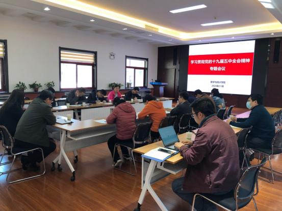 11月2日下午,必赢集团网站召开党委中心组学习会议,深入学习贯彻党的十九届五中全会精神。学院党政领导、党支部书记、系所主任及教师代表等出席会议,宣传部韩豫列席,会议由党委书记颜莉主持。