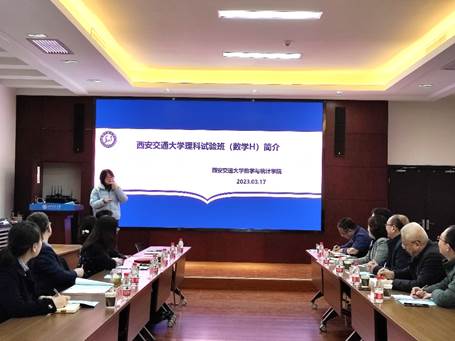 易媛副院长在座谈会上介绍了学院的历史沿革、管理架构、学科建设、培养目标、培养措施等基本情况。针对南京邮电大学理学院重点调研的拔尖人才培养方案,易媛副院长围绕超凡数学素养、自我驱动的交叉研究兴趣、洞察问题的敏锐直觉、高尚品行的人文素养这一培养目标进行了说明,重点介绍了构建重数学基础、重科研创新、重个性培养、加强国际化的拔尖人才培养体系,并基于分类甄选人才、动态与柔性相结合的进出机制进行了特别介绍。
