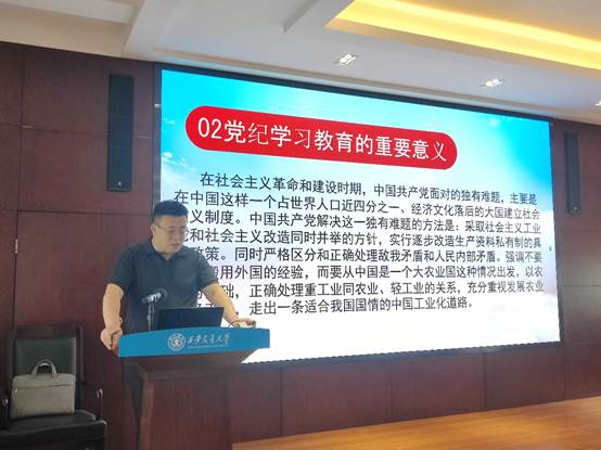 会议邀请马克思主义学院副教授高飞做题为“深入开展党纪学习教育,始终做到忠诚干净担当”的专题报告。高飞系统讲述了党纪学习教育的开展时间、重要意义、学习目的、目标要求和学习重点,详细解读了《中国共产党纪律处分条例》学习32问。讲座内容系统全面、深入浅出,通过一个个生动的案例,让大家对《条例》的内容和意义有了更加深刻的认识和理解。