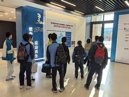 行程自风帆广场开始,师生一行徒步至涵英楼,沿途尽情感受创新港的风采。在涵英楼一楼西侧的中国西部科技创新港数字展厅内,一段关于创新港从梦想到现实的精彩故事缓缓展开。展厅以“使命感召、应运而生”为序章,生动阐述了创新港的建设理念与时代背景;随后通过“国家样板、全球高地”展示了其在国内外的影响力与定位;“时代引领、大港崛起”则记录了创新港快速发展的辉煌历程;“创新引擎、科研集群”部分详细介绍了这里如何成为科研创新的热土;而“扬帆致远、世界之光”则展望了创新港未来的宏伟蓝图。
