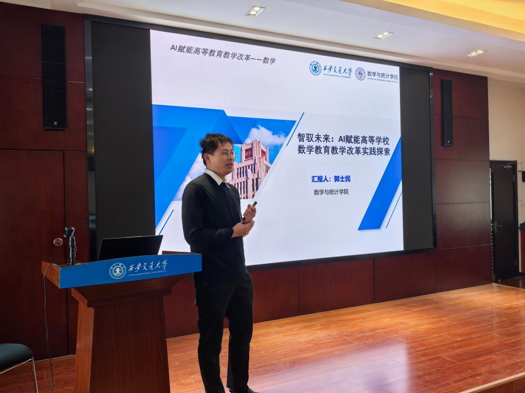 西安交通大学郭士民教授的“智驭未来:AI赋能高等学校数学高等教育教学改革实践探索”报告介绍了必赢集团网站目前在AI赋能教学方面已经取得的成效、正在进行的工作以及未来的工作规划。徐小绪副教授的“AI辅助泛函分析教学实践”报告介绍了AI在专业课程中的应用探索,例如AI辅助课件制作、视频制作、作业批改等。他们不仅分享了在数学高等教育改革中的宝贵经验,更以具体的案例,生动诠释了AI技术如何助力数学教学走向智能化、个性化。