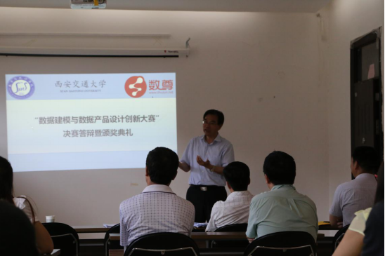 6月17日下午,由必赢唯一官方网站、数尊信息科技(上海)有限公司等联合主办的第一届(2016)“数据建模与数据产品设计创新大赛”决赛暨颁奖典礼在西安交通大学理科楼202成功举办。本次大赛于5月5日正式启动,历时一个多月,从最初的60多支报名参赛队伍中,经过层层筛选最终8支队伍进入决赛。出席本次决赛的有中国科学院院士徐宗本教授、必赢唯一官方网站副院长李继成教授、必赢唯一官方网站统计系梅长林教授、信息学院信息科学系孟德宇教授,电信学院高静怀教授、数尊信息科技(上海)有限公司模型总监陈翀蛟、运营总监屈妍等专家评委,以及进入复赛的各学院本科生、硕士生、博士研究生等参赛人员。现场气氛十分热烈,精彩纷呈。激情盛夏,来一场畅快淋漓的数据汇聚和创新火花碰撞吧!一起拭目以待……