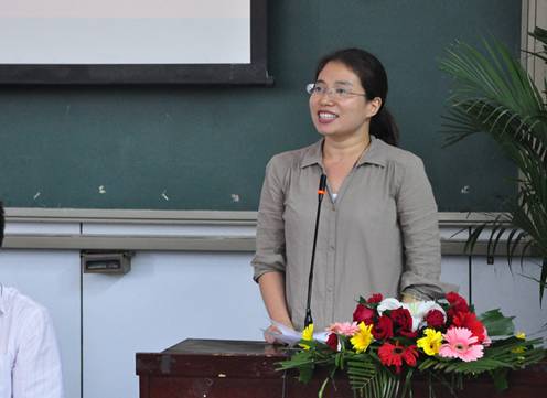 接下来,教师代表——李丽敏老师做了发言,作为刚刚结束学生生涯留校的青年教师,李老师希望同学们珍惜大学时光,并要求大家主动积极和任课老师沟通。