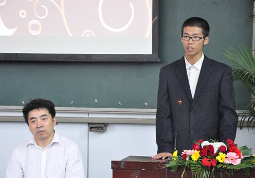 随后,数学试验01班马贤忠同学作为老生代表寄语新同学。