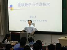 徐院士首先为大家带来了一场精彩的报告,一改往日的学术范儿,借用歌德的名言“读史使人明智,读诗使人灵秀,数学使人精确……逻辑修辞使人善辩”以及自己的切身体会深刻地阐释了学好数学的重要性,然后又运用石油勘探、车牌还原、图像处理等实例生动形象地讲解了数学发展前景之广袤,最后语重心长地教导大家:大学期间“课堂、图书馆、讲座”一定不要缺席,这三个地方会让大家受益终身以及规划时间、打好专业基础的重要性。