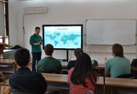 5月12日上午10点,数学学院特邀外国语学院研究生英语教学中心冯广宜老师为来访的美国学生朋友做了题为“China’s Opening—A Historic View”的专题讲座,讲座由数学学院王立周副教授主持,数学试验班三、四年级的学生参加了此次讲座。