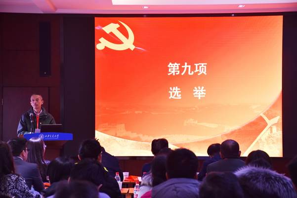 校党委副书记宫辉同志代表学校党委向大会的召开表示热烈的祝贺,对学院上一届党委的工作和学院近几年来的发展成绩给予了充分肯定,并对新一届党委委员提出了三点期望。一是不断加强政治建设,充分发挥党委政治核心作用,团结和凝聚全院党员和师生围绕中心、把准方向,建强组织、凝聚人心,深化改革、推动发展。二是坚持立德树人根本任务,全面贯彻全国教育大会精神,把培养社会主义事业合格的建设者和接班人作为教书育人的出发点和落脚点,引导学生成长成才。三是加快推进一流学科建设和创新港内涵建设,加强学科布局顶层设计,狠抓班子建设和制度执行,打造高水平师资队伍,提高科学研究水平,丰富思想文化建设,不断推进学院各项工作再上新的台阶。