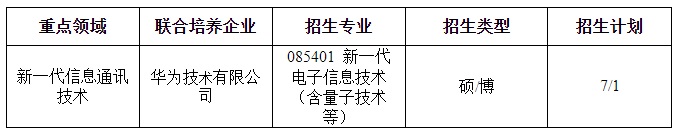 学院在新一代信息通讯技术工程领域拟招收专业学位硕士推免生7人、专业学位直接攻博生1人。拟按照联合培养单位和领域分组进行选拔考核,择优录取,具体招生领域和名额分配如下: