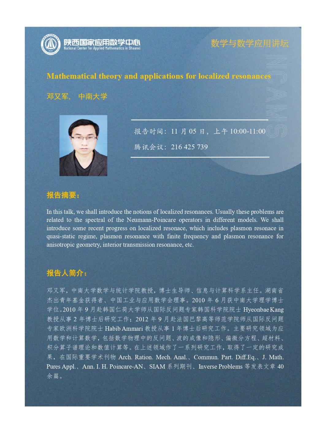 【数学与数学应用讲坛】中南大学邓又军教授学术报告通知