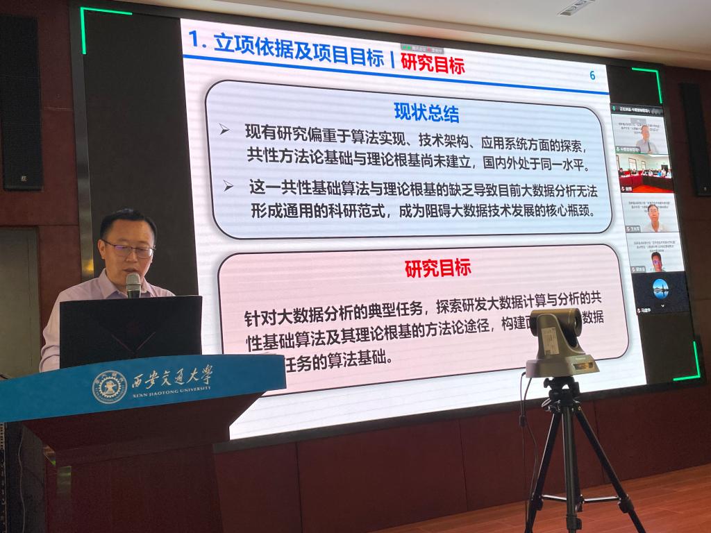 9月19日,西安交通大学组织召开国家重点研发计划“变革性技术关键科学问题”重点专项“大数据计算与分析的基础算法”项目中期总结会议,会议采取线上线下相结合的方式举行。中期检查专家由南开大学王兆军教授、山西大学梁吉业教授、南方医科大学马建华教授、西安交通大学高静怀教授和叶凯教授组成。必赢唯一官方网站徐宗本院士、孙建永院长、颜莉书记,西安交通大学科研院副处长李小虎,项目负责人孟德宇教授、课题负责人和项目骨干近30人加会议。会议由孟德宇主持。
