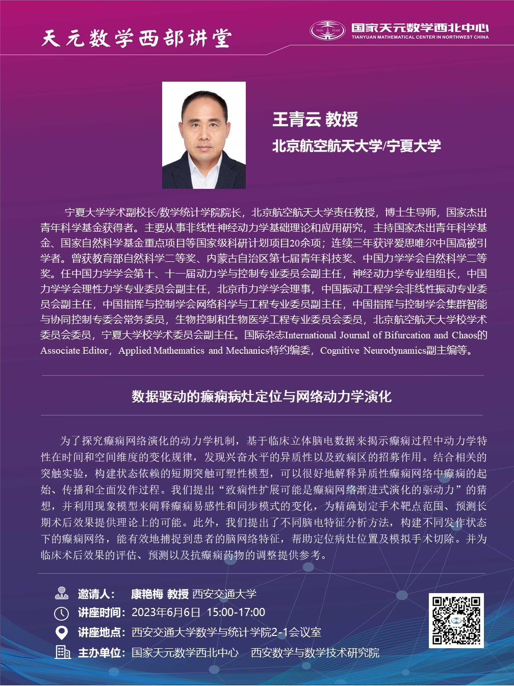 【天元数学西部讲堂】数据驱动的癫痫病灶定位与网络动力学演化