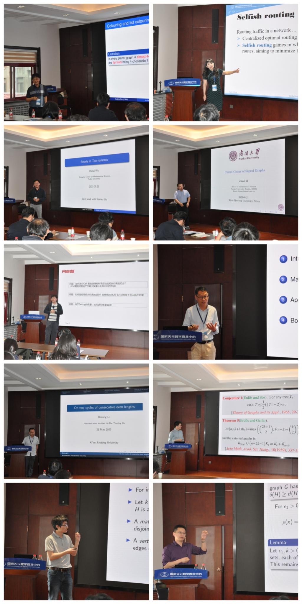研讨会期间,浙江师范大学朱绪鼎教授、中国科学院数学与系统科学研究院陈旭瑾研究员、复旦大学吴河辉教授、南开大学李佳傲副教授、新加坡国立大学黄皓教授、华为技术有限公司高宇研究员、福州大学侯建锋教授、西北工业大学李斌龙教授、南京大学陈耀俊教授、上海交通大学汪彦副教授、山东大学王光辉教授、美国东密西根大学/西安财经大学刘九强教授等12位专家作了精彩报告,内容涉及图论及相关问题的前沿研究领域,展示了图论、组合数学及其应用的最新学术成果,与会学者们纷纷表示会议内容丰富,受益匪浅。
