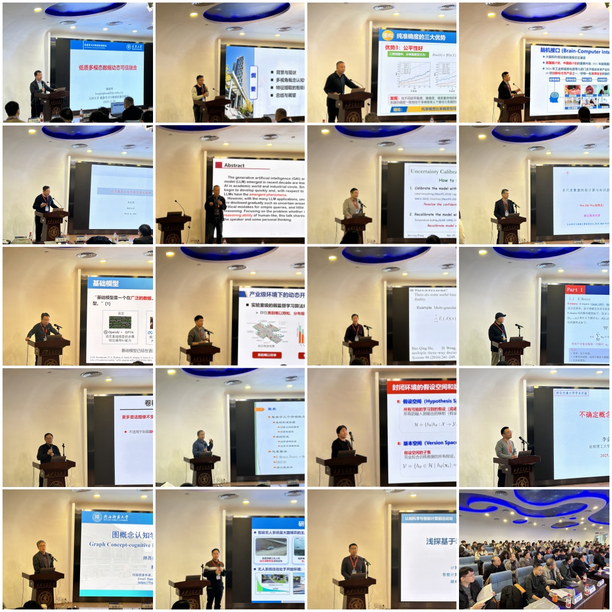 在学术论坛上,天津大学胡清华教授从低质量多模态数据关联驱动要素切入,提出了不确定性引导的可信多模态融合框架;西南大学徐伟华教授系统梳理了大数据认知学习与智能计算技术进展,展望未来发展方向;山西大学钱宇华教授延拓了传统机器学习理论,以构建更加科学可信的机器学习理论与方法;华中科技大学伍冬睿教授展示了脑机接口在解码精度、对抗安全与隐私保护领域的最新突破;湖南大学李庆国教授拓展形式概念分析在逻辑代数、偏序集等数学工具中的应用;深圳大学王熙照教授剖析了LLMs的推理能力瓶颈和未来研究方向;东南大学张敏灵教授深入探讨了深度神经网络的校准能力;浙江海洋大学吴伟志教授阐述了多尺度数据粒计算模型及知识获取框架;北京邮电大学石川教授提出了图基础模型的实现路径与新学习范式;浙江大学王皓波研究员介绍了团队在开放世界下弱监督学习算法的研究进展;武汉大学胡宝清教授探讨了数据融合中的对偶性问题;西安交通大学张讲社教授分享了一种基于信息论和重要性抽样的聚类分析方法;西安交通大学孟德宇教授介绍了一系列能够处理图像的旋转不变性和尺度不变性的高精度卷积核参数化方法及其应用;北京师范大学于福生教授提出了基于模糊信息粒化的时间序列聚类方法;中国人民大学赵素云教授提出了应对开放环境挑战的弱监督学习算法;昆明理工大学李金海教授介绍了概念认知学习在不确定性研究方面的成果;陕西师范大学郝飞教授阐述了图概念认知学习的理论框架和应用;天津大学王煜副教授介绍了面向开放环境自主感知的多粒度建模方法;湖南师范大学代建华教授从粒度建模的角度探讨了部分标记数据、多标记数据和模糊数据中的特征选择方法。会议聚焦认知科学与智能计算交叉领域的核心议题,围绕"不确定性问题"、"意识与记忆机理建模"及"脑网络图机器学习建模"等方向展开了深度研讨。