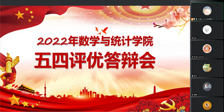 On the evening of April 12, the school of mathematics and statistics held an online conference on "May 4th appraisal and defense of the school of mathematics and statistics in 2022". Li Yibao, deputy secretary of the college, Zhang Ruoxin, Secretary of the Youth League Working Committee, and part-time counselors attended the meeting and served as judges.