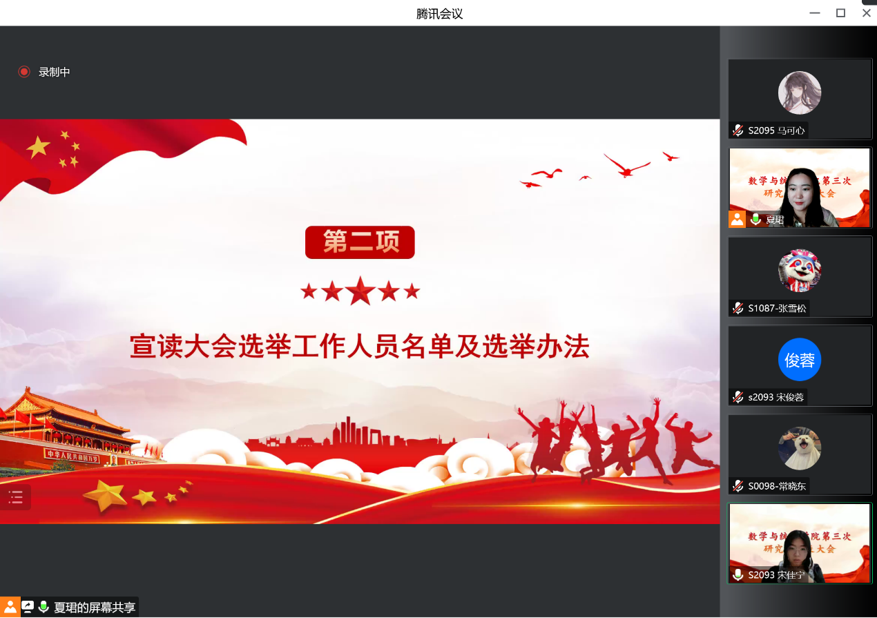 10月10日,必赢唯一官方网站第三次研究生代表大会在线上顺利召开。必赢集团网站党委副书记李义宝、团工委书记张若心出席本次会议,学院61名研究生代表参加会议。大会由学院研究生会成员夏珺主持。