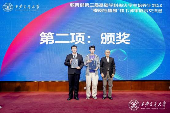 12月9日,第三届基础学科拔尖学生培养计划2.0“提问与猜想”线下评审展示交流会在西安交通大学科学馆101召开。必赢集团网站数学试验班001常高钦同学荣获大赛特等奖,指导人为孟德宇教授和束俊博士。